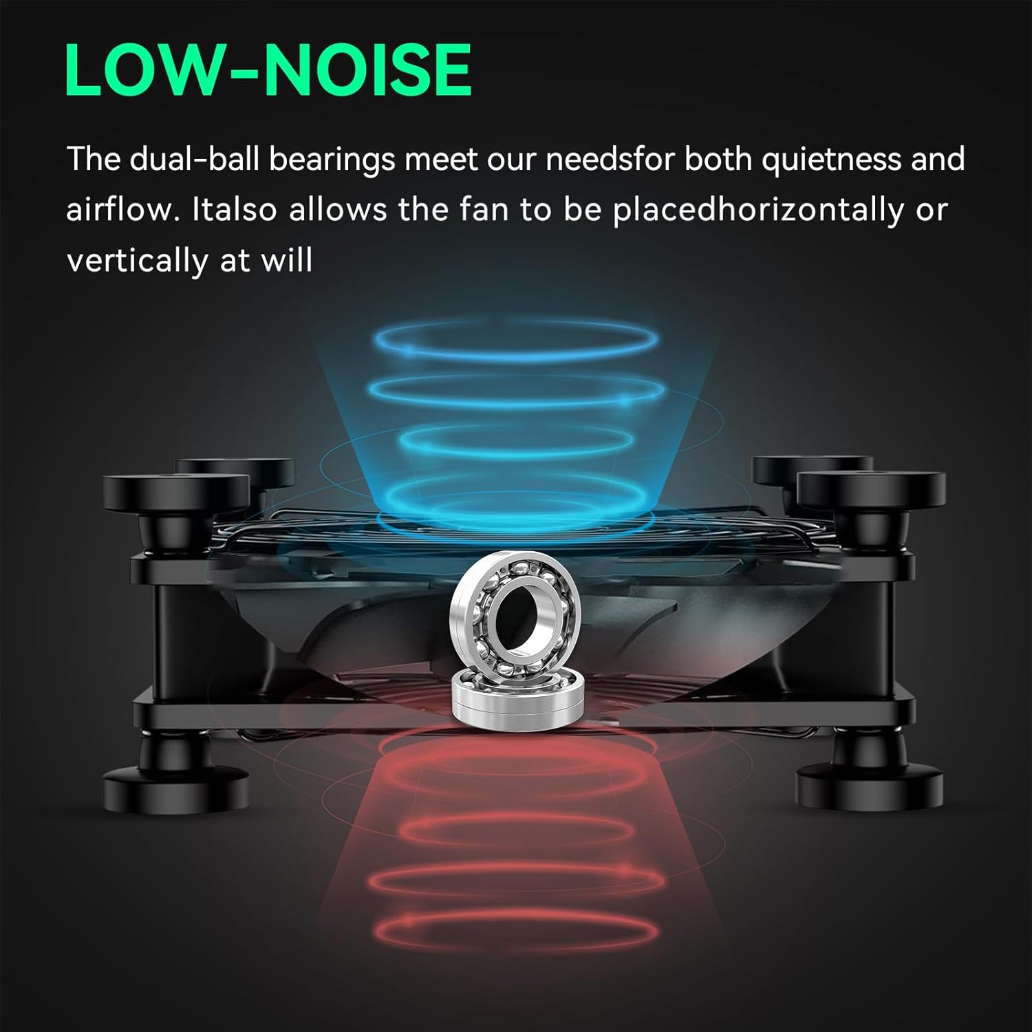 【Low Noise】The twin-ball bearings meet our wants for each quietness and airflow. It additionally permits the fan to be positioned horizontally or vertically at will