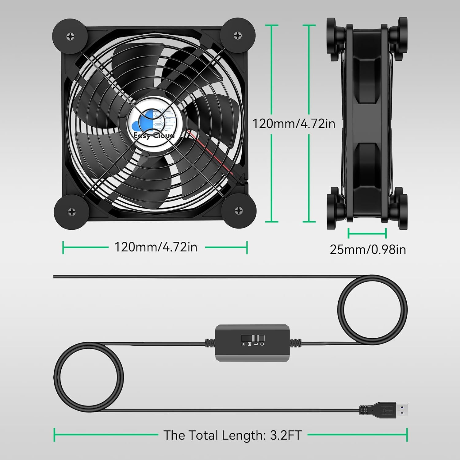 Straightforward Cloud 120mm USB Fan, USB Powered Pc Fan with 3 Speeds Controller Small PC Cooling Followers for Cupboard Case Server TV Receiver Router DVR Ps Xbox Cooler, 2Pcs