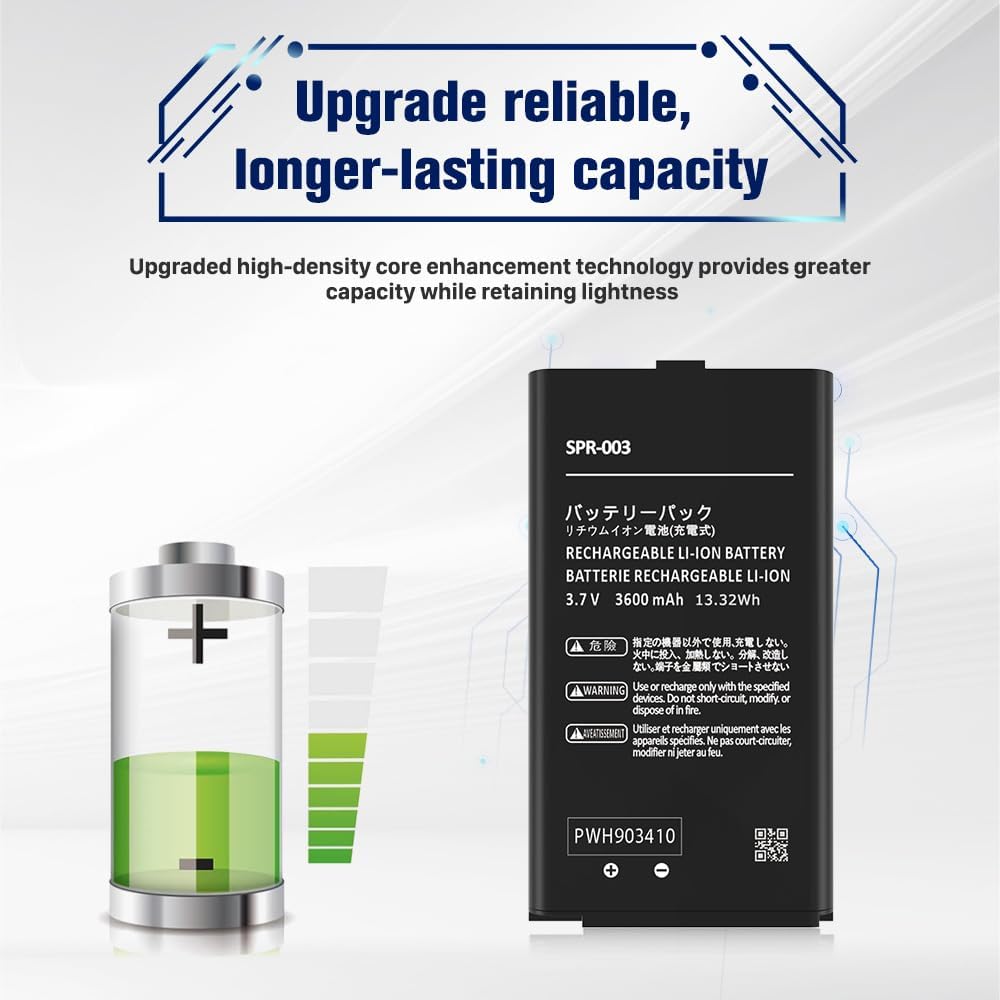 This upgraded model of SPR-003 excessive capability alternative battery, battery sort: Lithium polymer, battery capability: 3600mAh, Watt-hour: 1.5Watt: Battery capability: 3600mAh. New 0 cycle, sustainable cost 1200 instances, offering longer battery life. Batteries for Nintendo 3DS XL’s new 3DS XL LL recreation console and Change recreation console